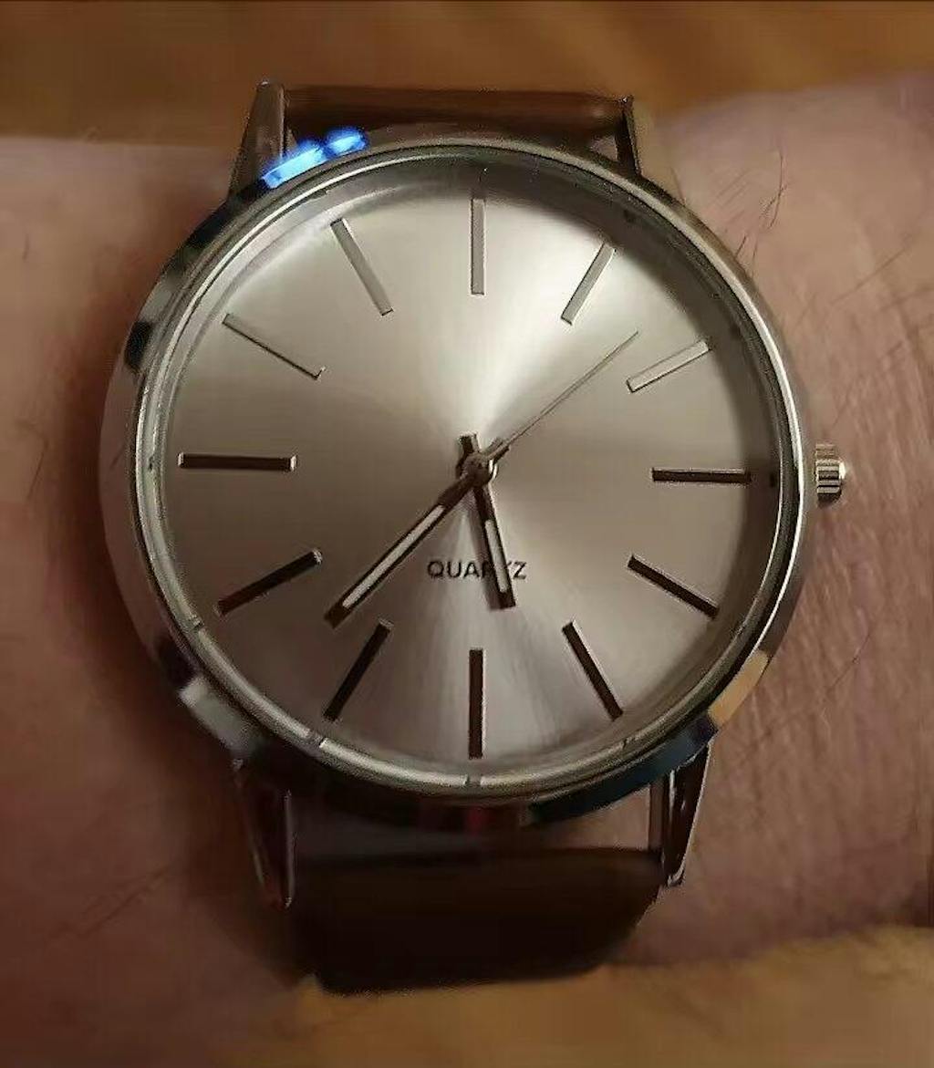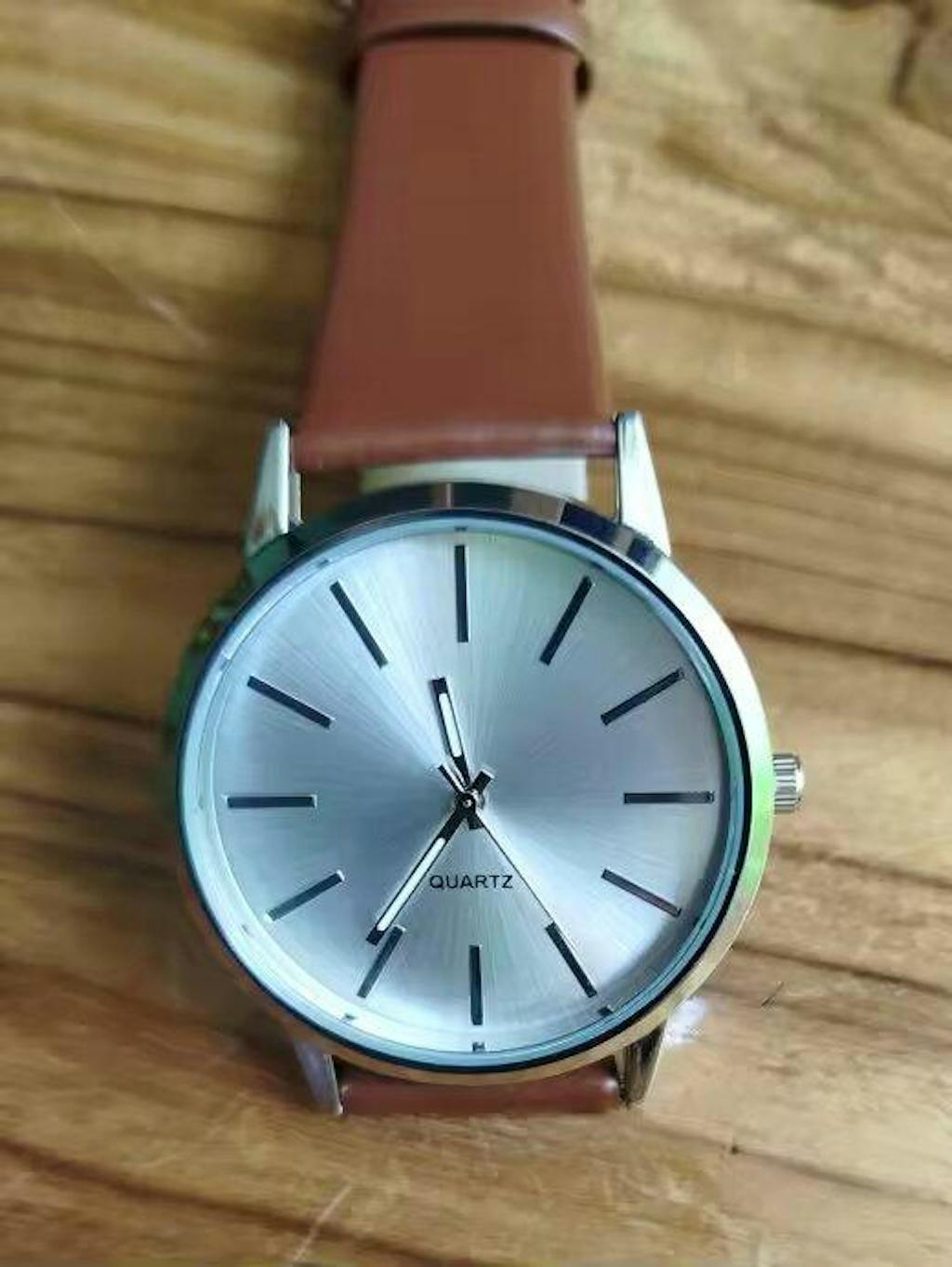 Caixa em liga metálica com acabamento sólido e pulseira de fecho tradicional.